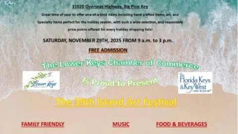 Nov 29 The 39th Island Art Festival Saturday, November 29, 2025 3:00 PM 4:00 PM 31020 Overseas Highway (map) Google Calendar ICS View Event →